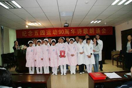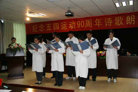 为纪念“五四”运动90周年,三台博爱男科医院团支部特组织诗歌朗诵会。