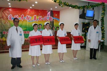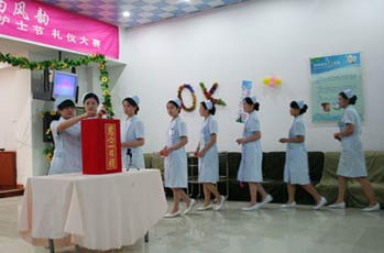 5月12日,我院护士欢聚一堂,度过了属于自己的难忘节日—— 国际护士节。护士们表演了职业礼仪和护理动作规范,而且进行了慈善捐款活动,为需要帮助的人们献上了一份爱心。充分表现出护士们爱的奉献,美的风韵。