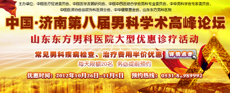 中华男科学会专家委员会、中华健康基金会主办,山东东方男科医院承办的“中国-济南第七届男科学术高峰论坛”于2011年10月25日在山东东方男科医院隆重举行。在这次论坛上,京鲁著名男科专家齐聚山东东方男科医院.[详细]